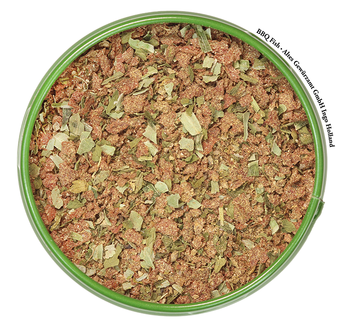 Zutaten: Salz, Tomatenflocken, Knoblauch, Pfeffer grün, Pfeffer weiß, Fenchelsaat, Ingwer, Pfeffer rot, Sternanis, Zitronengras, Estragon, Petersilie, Timut-Pfeffer, Safran.