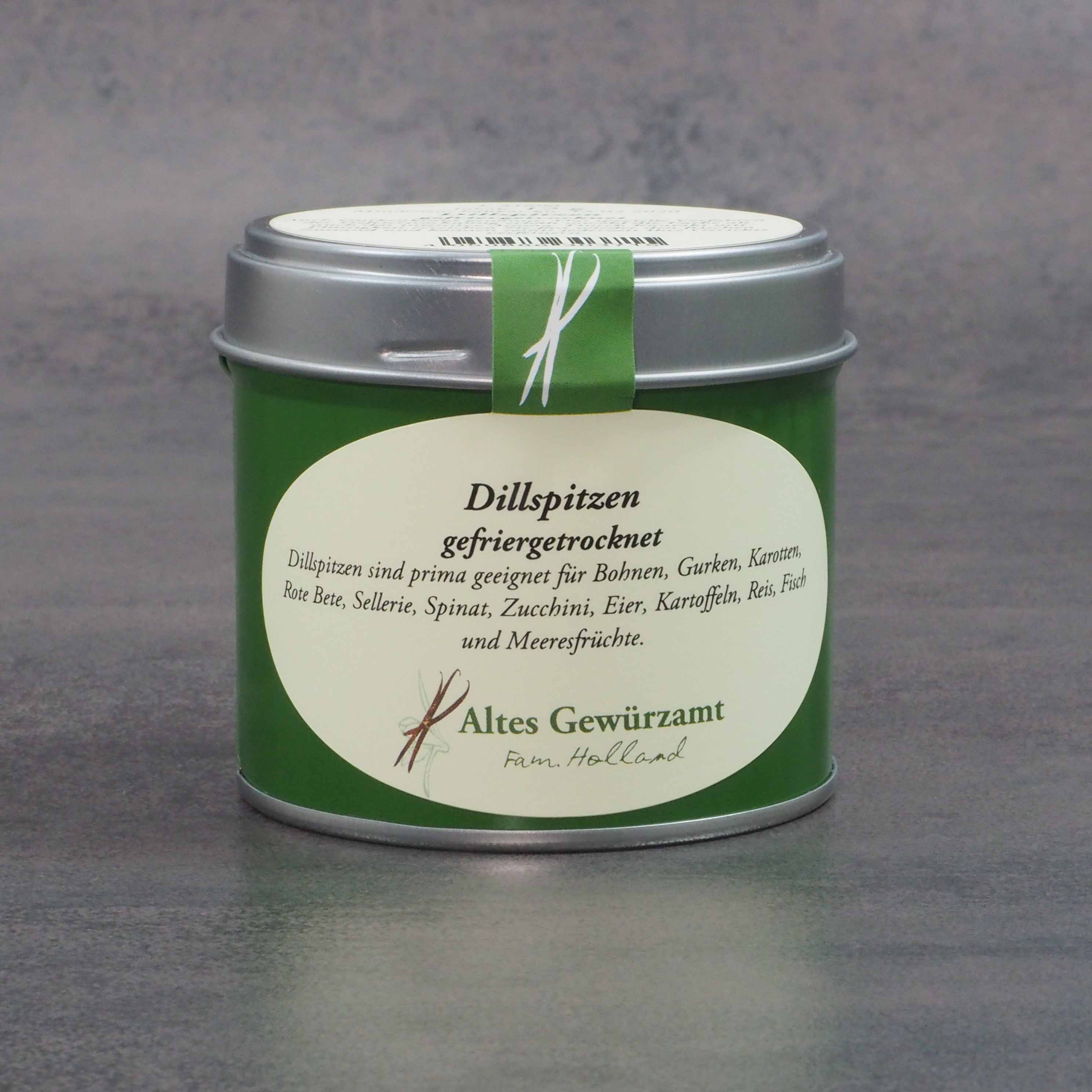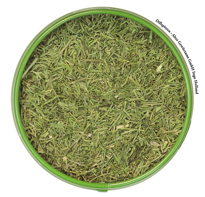 Dillspitzen sind prima geeignet für Bohnen, Gurken, Karotten, Rote Bete, Sellerie, Spinat, Zucchini, Eier, Kartoffeln, Reis, Fisch und Meeresfrüchte.