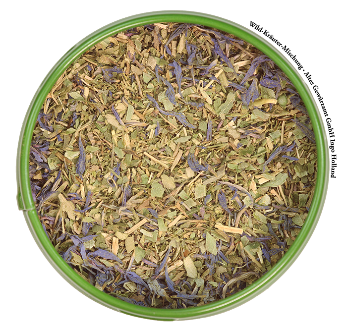 Zutaten: Olivenblätter, Bohnenkraut wild (Sarriette), Fenchel, Ysop, Oregano, Wildthymian, Bärlauch, Kornblumen, SELLERIEBLÄTTER, Estragon, Fenchelpollen.